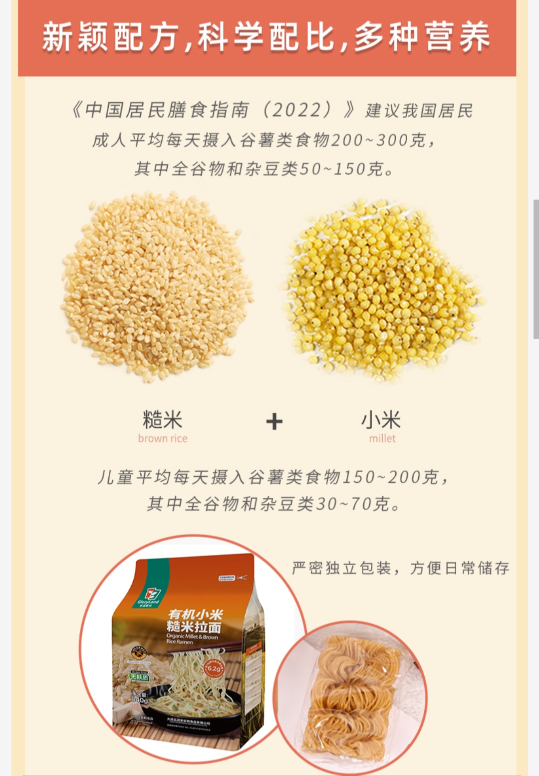 準備好迎接全新層次的美味健康嗎?CC 有機小米糙米拉面,將帶給你一碗充滿飽足感、營養豐富、又讓人無比享受的拉面體驗!這款拉面不僅美味,更是你健康生活方式的完美夥伴。我們採用有機小米和糙米精心製作,讓你每一口都能品嚐到來自大自然的純粹滋味。 告別傳統拉面的高熱量和低營養,CC 有機小米糙米拉面擁有更豐富的膳食纖維、維生素和礦物質。小米和糙米都是公認的健康穀物,富含抗氧化劑,有助於維持身體機能,讓你由內而外散發健康光彩。 這款拉面不僅適合素食者,也適合追求健康飲食的你。無論是快速的午餐、輕鬆的晚餐,還是為家人準備的健康美味,CC 有機小米糙米拉面都能輕鬆滿足你的需求。烹調方式簡單快捷,只需幾分鐘即可享用,讓你省時省力,享受更多美好時光。 一包840克的份量,足夠讓你多次享用,是家庭必備的健康糧食。快來體驗 CC 有機小米糙米拉面的魅力,讓你的味蕾和身體都感受到滿滿的幸福吧! **CC 有機小米糙米拉面重點功能:** * **有機認證:** 採用有機小米和糙米製成,品質保證,讓你安心食用。 * **健康營養:** 富含膳食纖維、維生素和礦物質,提供更全面的營養。 * **美味可口:** 口感Q彈,香氣濃郁,讓你欲罷不能。 * **烹調簡單:** 快速方便,只需幾分鐘即可享用美味拉面。 * **素食友好:** 適合素食者食用,是健康飲食的理想選擇。 * **大份量包裝:** 840克大包裝,滿足家庭需求,經濟實惠。 * **多功能性:** 可搭配各種湯底和配料,創造屬於你獨特的拉面風味。